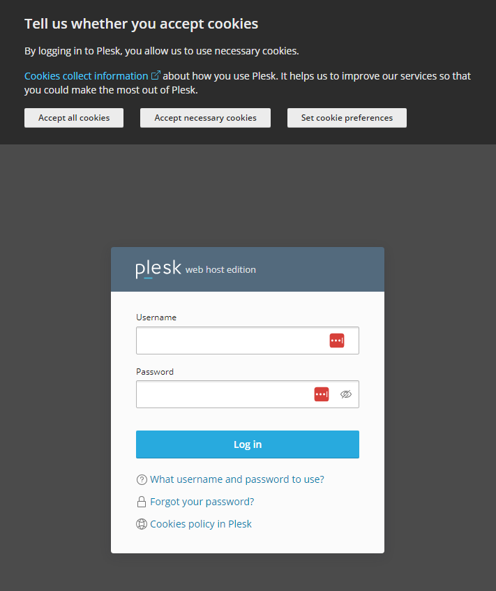 1. Silahkan login ke Plesk terlebih dahulu