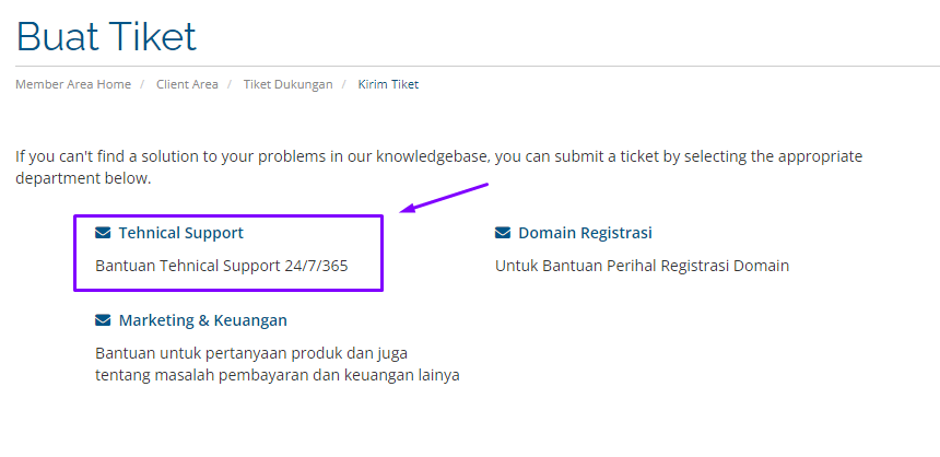 1. Technical support bagian ini fokus pada kendala domain atau hosting aktif yang digunakan. Infokan detail kendala yang sedang dihadapi, misal membutuhkan file tambahan bisa Anda lampirkan pada tiket atau upload dahulu file melalui menu "file manager" yang ada pada panel hosting.
