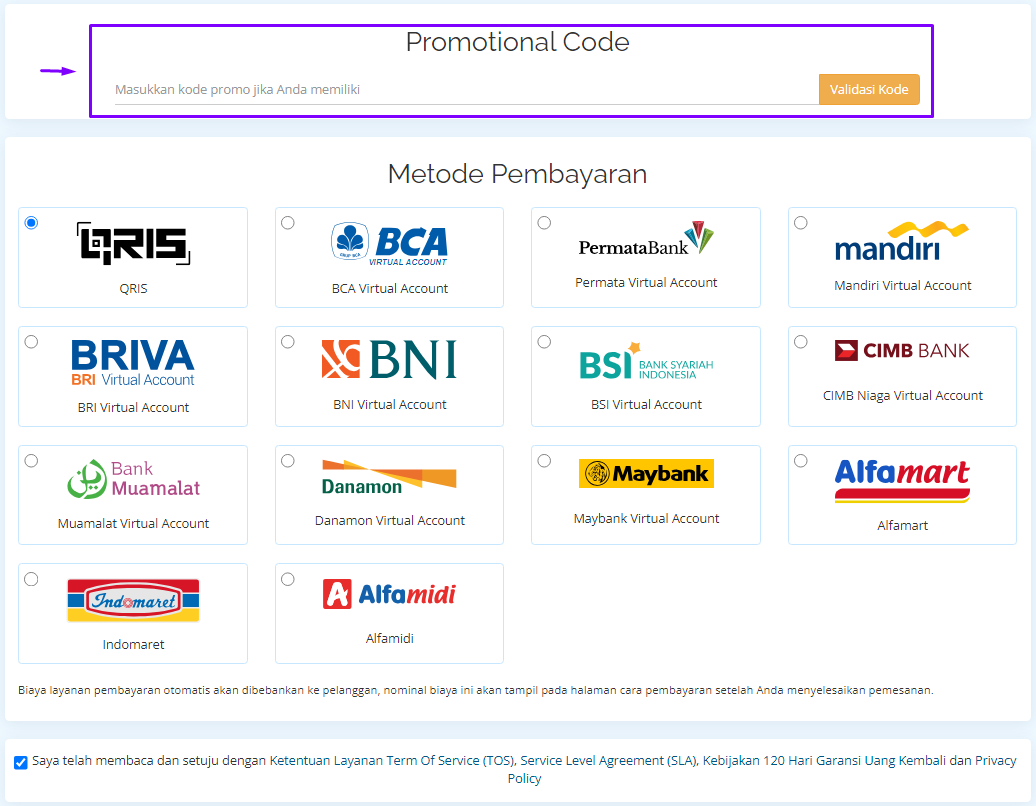 Pada bagian ini Anda tidak perlu memasukkan "Promotional Code" sebab jika ada promo sudah langsung otomatis by sistem