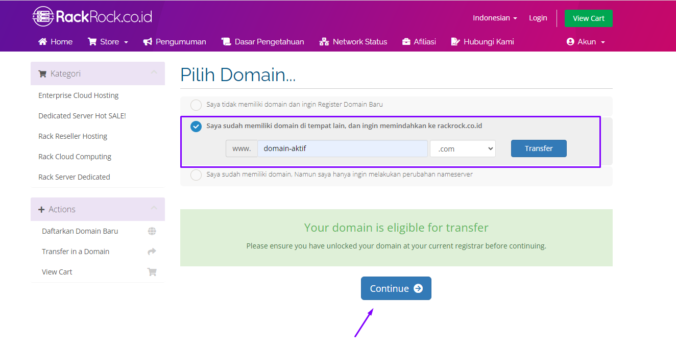 Jika Anda hendak melakukan transfer domain sekaligus order hosting bisa gunakan cara seperti berikut: