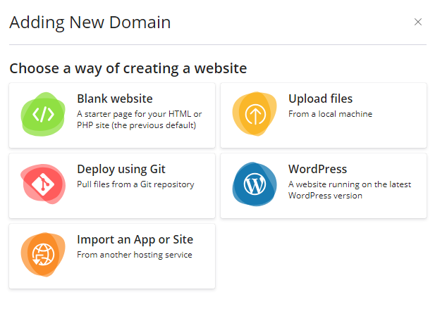 Kami sarankan untuk memilih "blank website" meski nantinya akan dipasang wordpress pada domain sebab hal ini akan memudahkan dalam managemet website nantinya